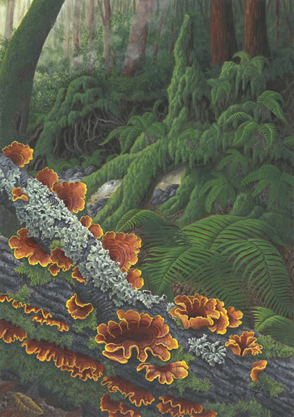 Beside Fall Creek (Stereum hirsutum) SOLD 12" x 17"